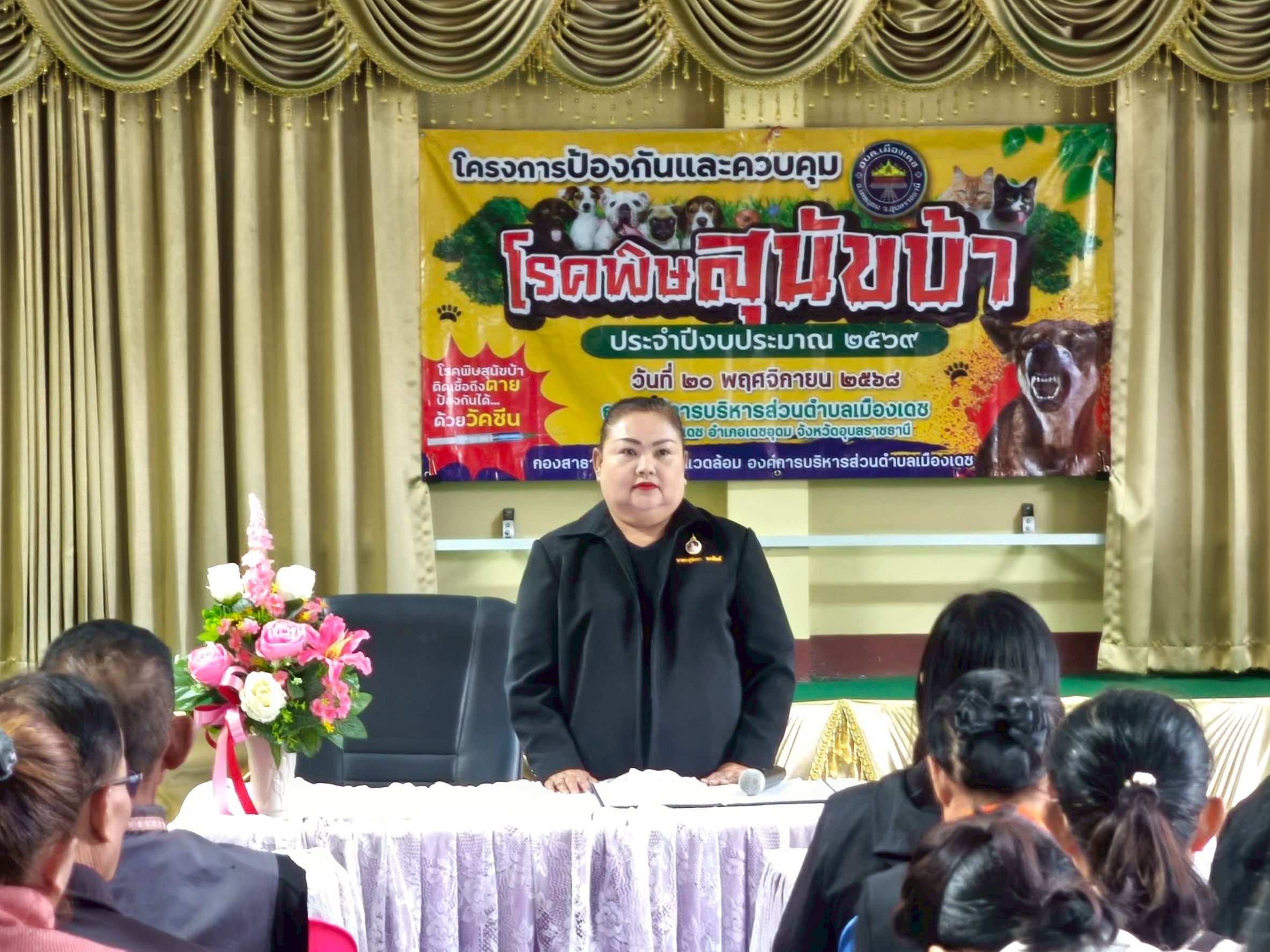 Thursday, 20 November 2025 08:30วันที่ 20 พฤศจิกายน 2568 เวลา 09.00 น. นางสุจิตรา พาพันธ์ นายกองค์การบริหารส่วนตำบลเมืองเดช พร้อมด้วยนายชลัท แสนศาลา รองปลัดองค์การบริหารส่วนตำบลเมืองเดช และหัวหน้าส่วนราชการ พนักงานส่วนตำบล องค์การบริหารส่วนตำบลเมืองเดช ร่วมกับนายอนุสรณ์ คำวงศ์ ปศุสัตว์อำเภอเดชอุดม ได้เป็นประธานในพิธีเปิดโครงการป้องกันและควบคุมโรคพิษสุนัขบ้า ประจำปีงบประมาณ 2569 วัตถุประสงค์เพื่อสำรวจข้อมูลจำนวนสุนัขและแมวที่ขึ้นทะเบียนในเขตพื้นที่ตำบลเมืองเดช พร้อมกับควบคุมป้องกันการระบาดของโรคพิษสุนัขบ้าในพื้นที่ ณ อาคาร ศพอส.อบต.เมืองเดช ตำบลเมืองเดช อำเภอเดชอุดม จังหวัดอุบลราชธานี