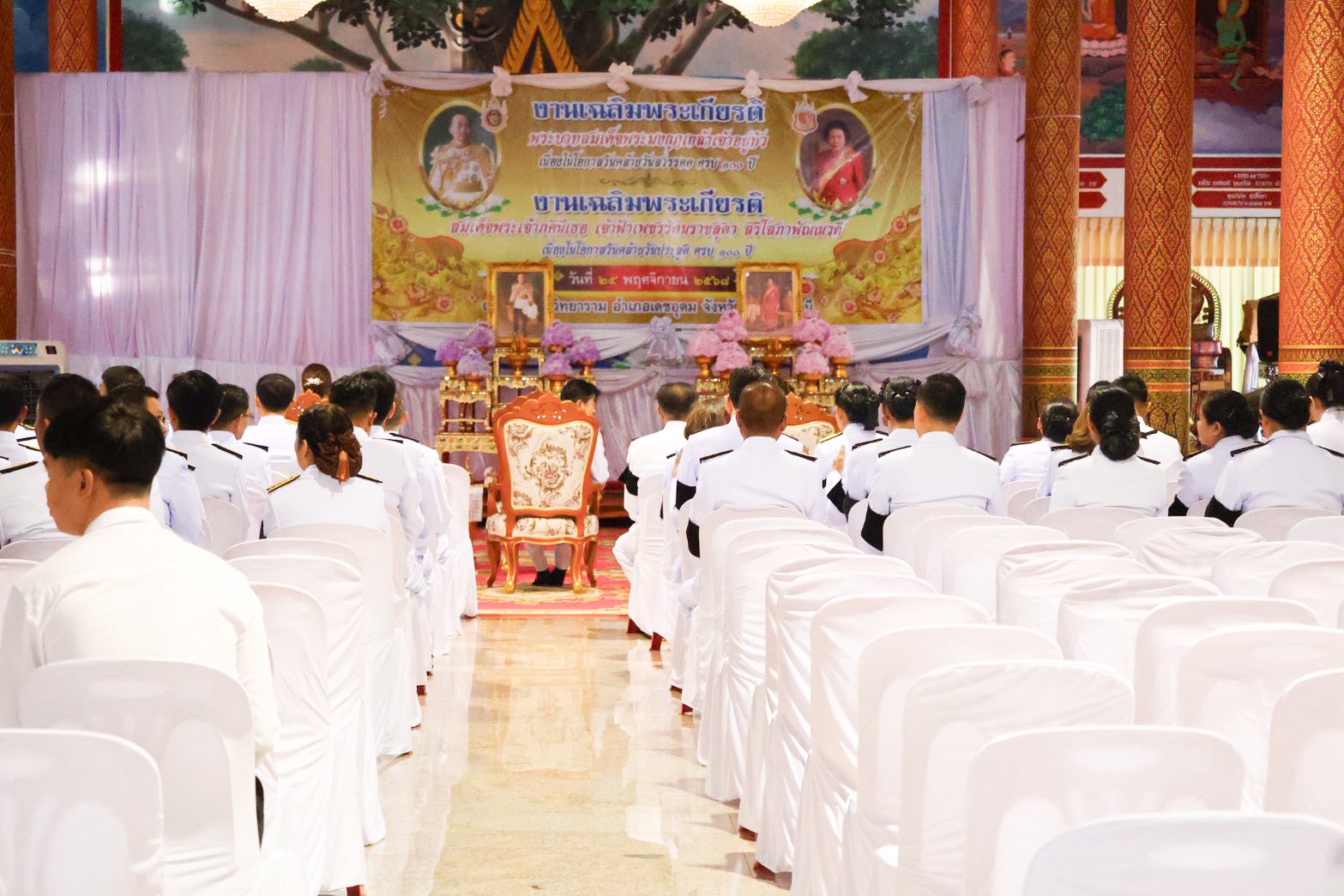 Tuesday, 25 November 2025 11:07วันที่ 25 พฤศจิกายน 2568 องค์การบริหารส่วนตำบลเมืองเดช นำโดย นางสุจิตรา พาพันธ์ นายกองค์การบริหารส่วนตำบลเมืองเดช พร้อมด้วย หัวหน้าส่วนราชการและพนักงานส่วนตำบล ได้เข้าร่วมพิธีเฉลิมพระเกียรติพระบาทสมเด็จพระมงกุฎเกล้าเจ้าอยู่หัว เนื่องในวันคล้ายวันสรรคตครบ 100 ปี และพิธีเฉลิมพระเกียรติสมเด็จพระเจ้าภคินีเธอ เจ้าฟ้าเพชรรัตนราชสุดา สิริโสภาพัณณวดี เนื่องในโอกาสวันคล้ายวันประสูติครบ 100 ปี