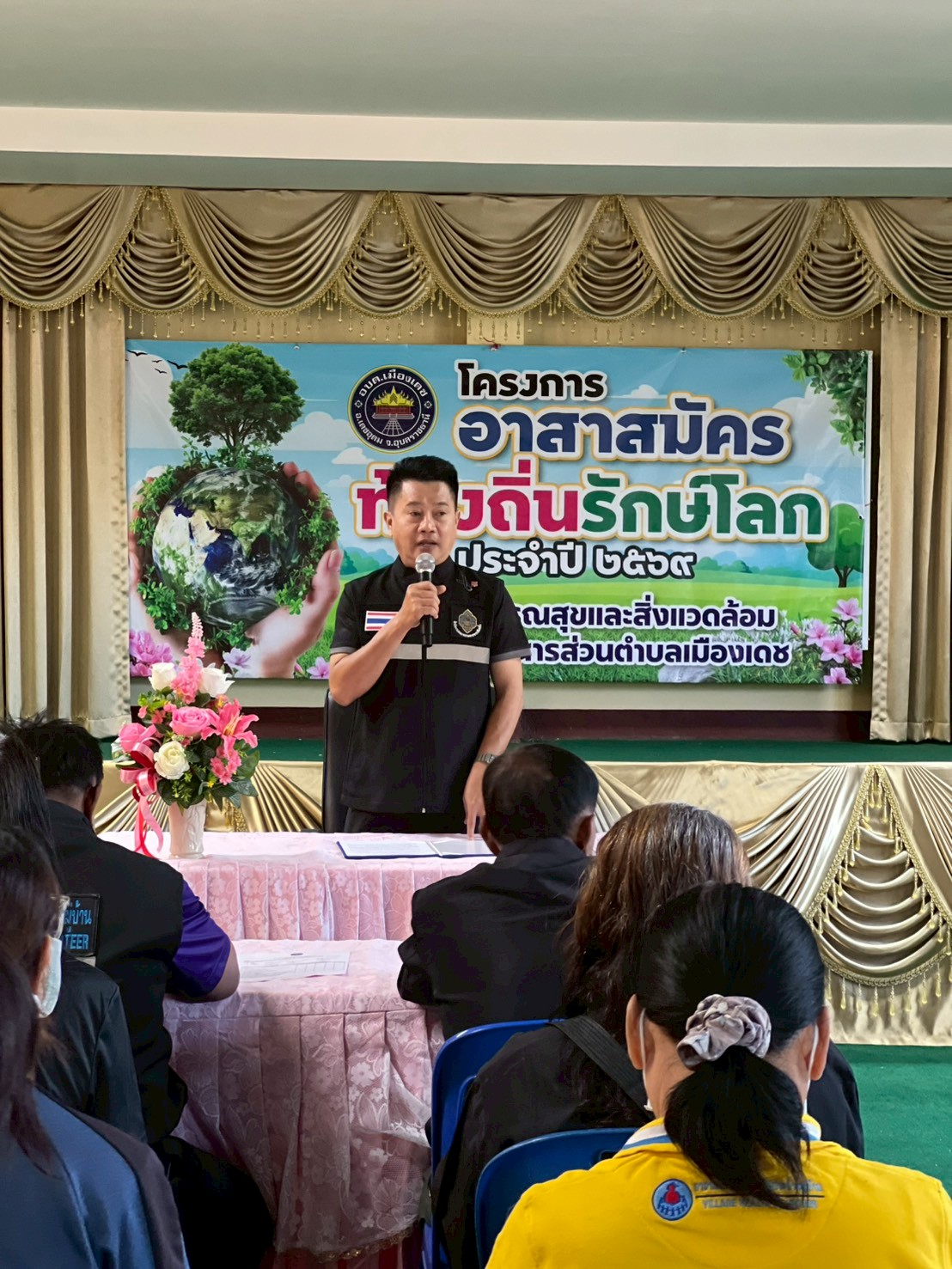 Thursday, 18 December 2025 16:18วันที่ 18 ธันวาคม 2568 เวลา 09.00 น. นายปัญญาปกร วิรักขะโม ปลัดองค์การบริหารส่วนตำบลเมืองเดช ปฏิบัติหน้าที่นายกองค์การบริหารส่วนตำบลเมืองเดช พร้อมด้วยนายชลัท แสนศาลา รองปลัดองค์การบริหารส่วนตำบลเมืองเดช และหัวหน้าส่วนราชการ พนักงานส่วนตำบล ได้เป็นประธานในพิธีเปิดโครงการอาสาสมัครท้องถิ่นรักษ์โลก (อถล.) ประจำปีงบประมาณ 2569 เพื่อเป็นการขับเคลื่อนการจัดกิจกรรมสำหรับอาสาสมัครท้องถิ่นรักษ์โลก (อถล.) โดยจัดดำเนินการในเขตองค์การบริหารส่วนตำบลเมืองเดช เป็นกลไกการทำงานเพื่อปกป้องและรักษาทรัพยากรธรรมชาติและสิ่งแวดล้อม มีความเสียสละและอุทิศตนในการทำงานด้านการจัดการสิ่งปฏิกูลและมูลฝอย การปกป้องและรักษาสิ่งแวดล้อมในท้องถิ่น ณ อาคาร ศพอส.อบต.เมืองเดช ตำบลเมืองเดช อำเภอเดชอุดม จังหวัดอุบลราชธานี