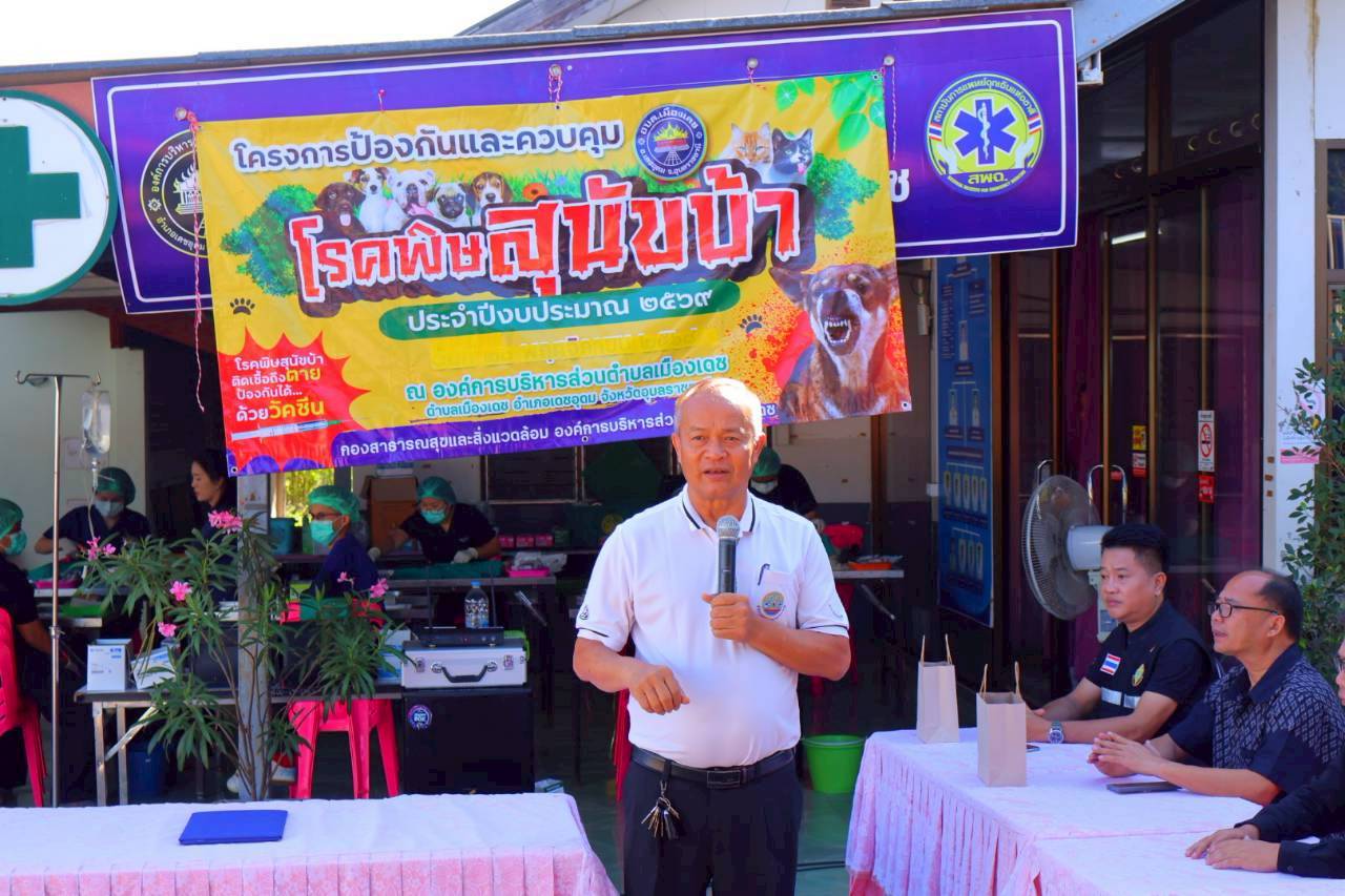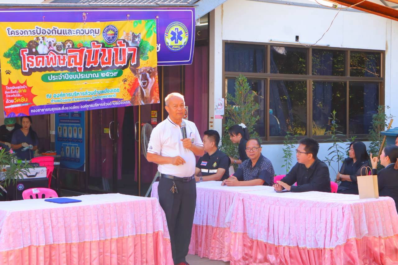 Tuesday, 23 December 2025 13:37วันที่ 23 ธันวาคม 2568 นายปัญญาปกร วิรักขะโม ปลัดองค์การบริหารส่วนตำบ.เมืองเดช ปฎิบัติหน้าที่นายก อบต.เมืองเดช พร้อมด้วยหัวหน้าส่วนราชการ ได้เปิดโครงป้องกันและควบคุมโรคพิษสุนัขบ้า ประจำปี 2569 ณ องค์การบริหารส่วนตำบลเมืองเดช อำเภอเดชอุดม จังหวัดอุบลราชธานี