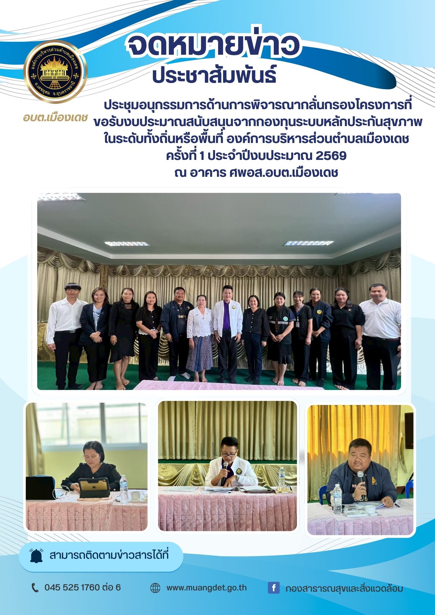 ประชุมอนุกรรมการด้านการพิจารณากลั่นกรองโครงการที่ขอรับงบประมาณสนับสนุนจากกองทุนระบบหลักประกันสุขภาพในระดับทั้งถิ่นหรือพื้นที่ องค์การบริหารส่วนตำบลเมืองเดช ครั้งที่ 1 ประจำปีงบประมาณ 2569