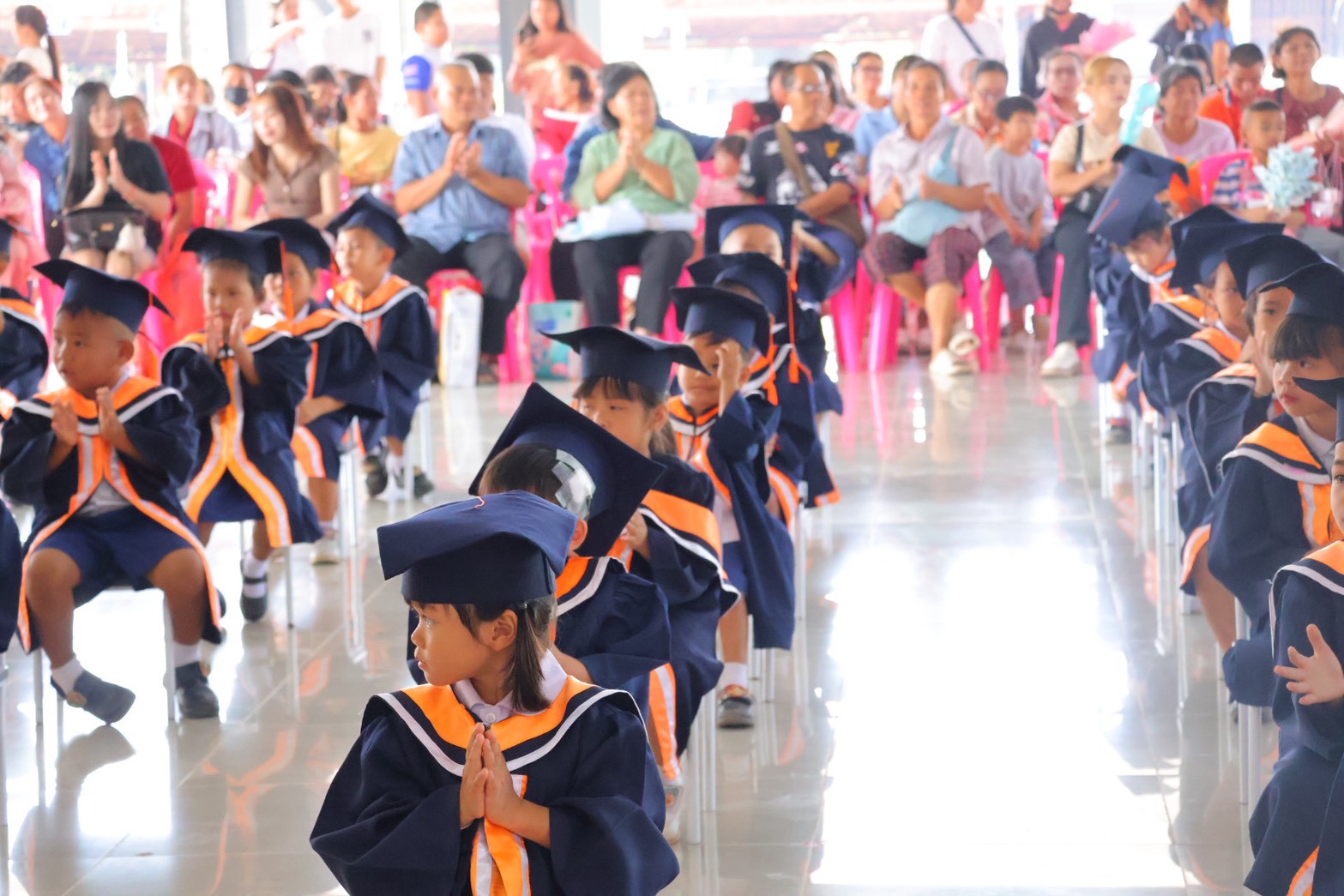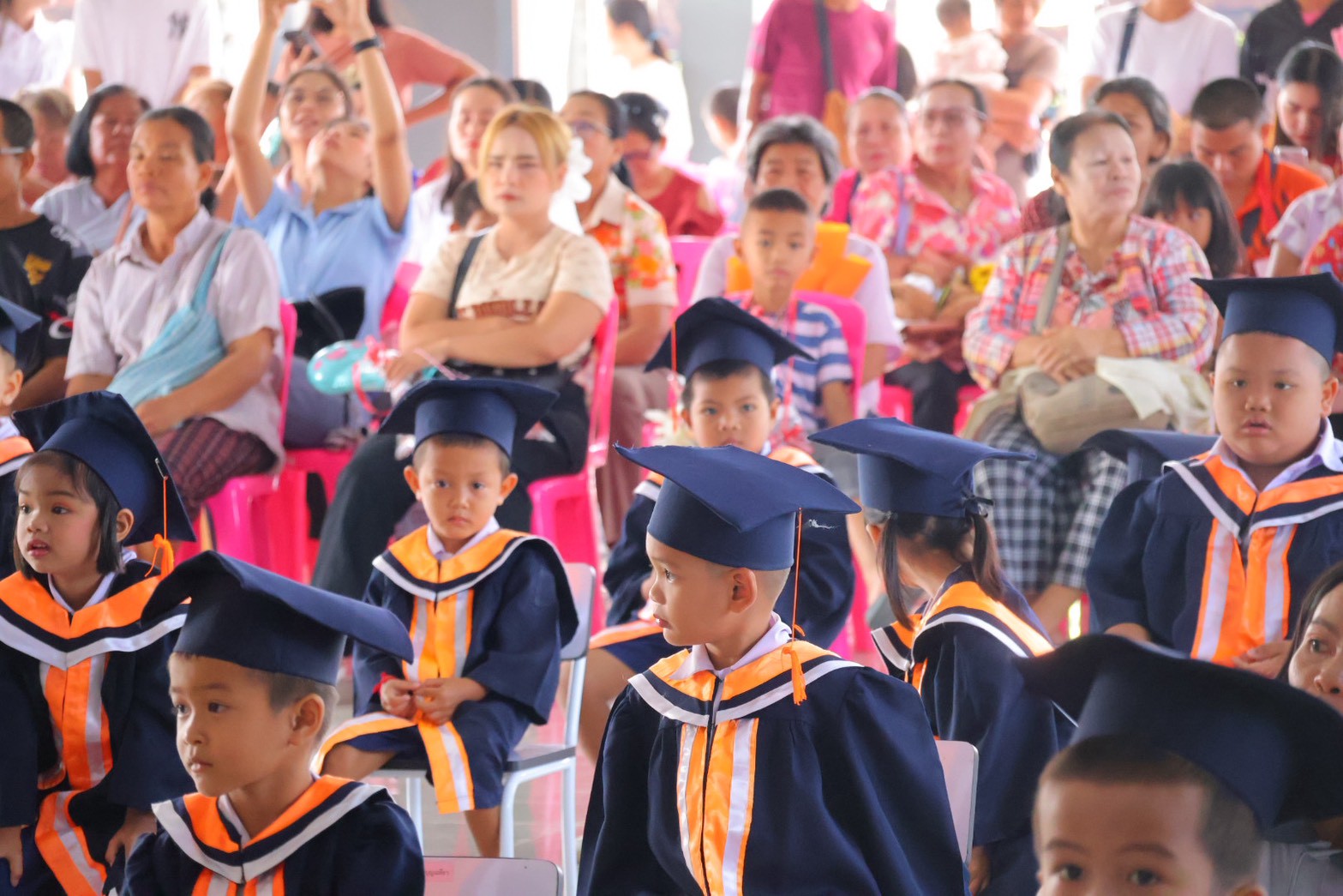 พิธีมอบวุฒิบัตรแก่บัณฑิตน้อย พร้อมด้วยคณะผู้บริหาร หัวหน้าส่วนราชการ และคณะกรรมการศูนย์พัฒนาเด็กเล็ก