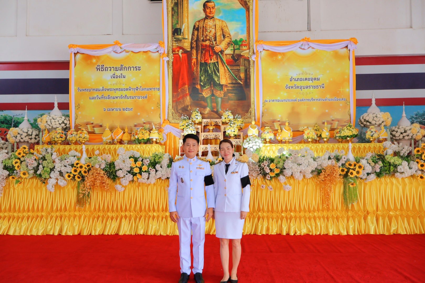 Tuesday, 07 April 2026 09:13วันจันทร์ที่ 6 เมษายน พ.ศ. 2569 เวลา 07.00 น. องค์การบริหารส่วนตำบลเมืองเดช ด้วยการนำของนางสุจิตรา พาพันธ์ นายกองค์การบริหารส่วนตำบลเมืองเดช ได้มอบหมายให้ นายนิพนธ์ พื้นชมภู รองนายก อบต.เมืองเดช เข้าร่วมพิธีถวายราชสักการะเนื่องในวันพระบาทสมเด็จพระพุทธยอดฟ้าจุฬาโลกมหาราช และวันที่ระลึกมหาจักรีบรมราชวงศ์ ประจำปี พ.ศ. 2569 พร้อมด้วย หัวหน้าส่วนราชการและพนักงานส่วนตำบล อบต. เมืองเดช ณ หอประชุมอเนกประสงค์ องค์การบริหารส่วนตำบลเมืองเดช อำเภอเดชอุดม จังหวัดอุบลราชธานี