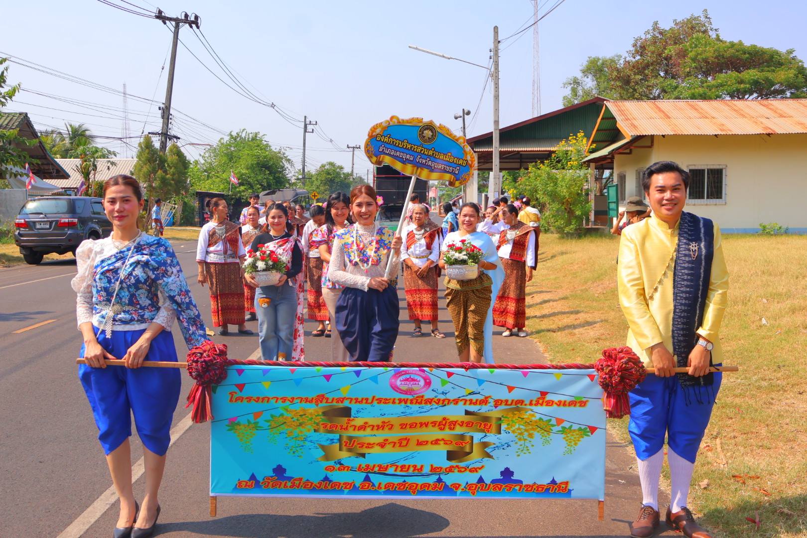 Monday, 13 April 2026 08:41วันที่ 13 เมษายน 2569 องค์การบริหารส่วนตำบลเมืองเดช ด้วยการนำของนางสุจิตรา พาพันธ์ นายกองค์การบริหารส่วนตำบลเมืองเดช พร้อมด้วยคณะผู้บริหาร สมาชิกสภา หัวหน้าส่วนราชการ พนักงานส่วนตำบล พนักงานจ้างตามภารกิจ พนักงานจ้างทั่วไป อบต.เมืองเดช ได้จัดกิจกรรมเย็นทั่วหล้า มหาสงกรานต์ โครงการสืบสานประเพณีสงกรานต์รดน้ำดำหัว ขอพรผู้สูงอายุ ณ วัดเมืองเดช อำเภอเดชอุดม จังหวัดอุบลราขธานี