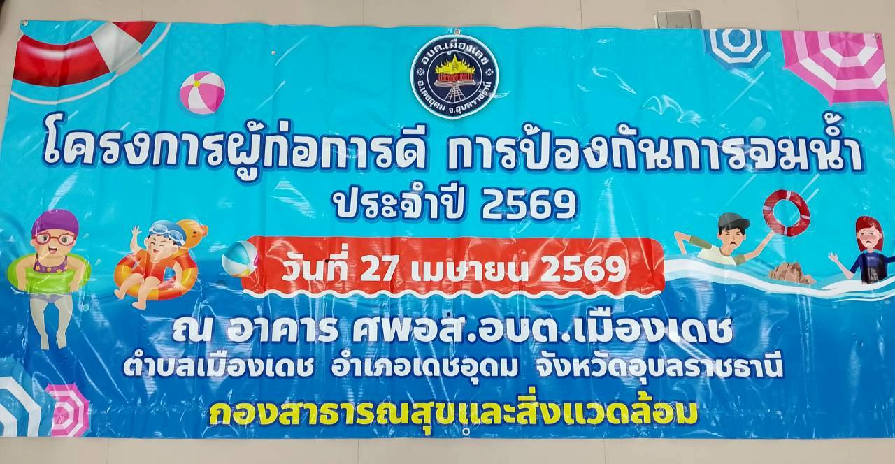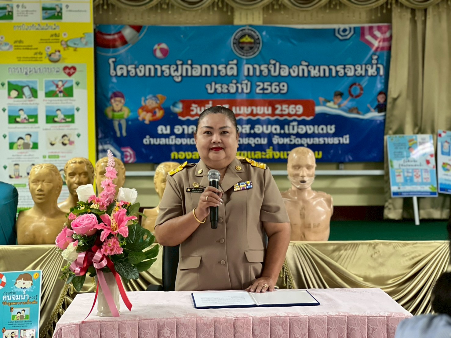 Monday, 27 April 2026 15:49วันที่ 27 เมษายน 2569 เวลา 09.00 น. นางสุจิตรา พาพันธ์ นายกองค์การบริหารส่วนตำบลเมืองเดช พร้อมด้วยนายชลัท แสนศาลา รองปลัดองค์การบริหารส่วนตำบลเมืองเดช หัวหน้าส่วนราชการ พนักงานส่วนตำบล และคณะวิทยากรจากองค์การบริหารส่วนตำบลบ้านแมด เป็นประธานในพิธีเปิดโครงการผู้ก่อการดี ป้องกันการจมน้ำ ประจำปีงบประมาณ 2569 โดยมีวัตถุประสงค์ 1. เพื่อพัฒนาและเพิ่มทักษะ ผู้นำชุมชน และอาสาสมัครในชุมชนแกนนำผู้ก่อการดี ป้องกันการจมน้ำ จำนวน 90 คน เป็นทีมเครือข่ายผู้ก่อการดี การป้องกันเด็กจมน้ำ ในเขตองค์การบริหารส่วนตำบลเมืองเดช 2. เพื่อส่งเสริมและสร้างทักษะผู้นำชุมชน และอาสาสมัครในชุมชน 90 คน ในการช่วยเหลือตนเองสามารถเอาชีวิตรอดจากการจมน้ำและสามารถช่วยเหลือผู้ที่ประสบภัยจากการจมน้ำได้ 3. เพื่อป้องกันแหล่งน้ำเสี่ยงในชุมชนมีการจัดการความปลอดภัยลดการเสียชีวิตของเด็กจากการจมน้ำ ณ.อาคาร ศพอส.อบต.เมืองเดช ตำบลเมืองเดช อำเภอเดชอุดม จังหวัดอุบลราชธานี/p>
