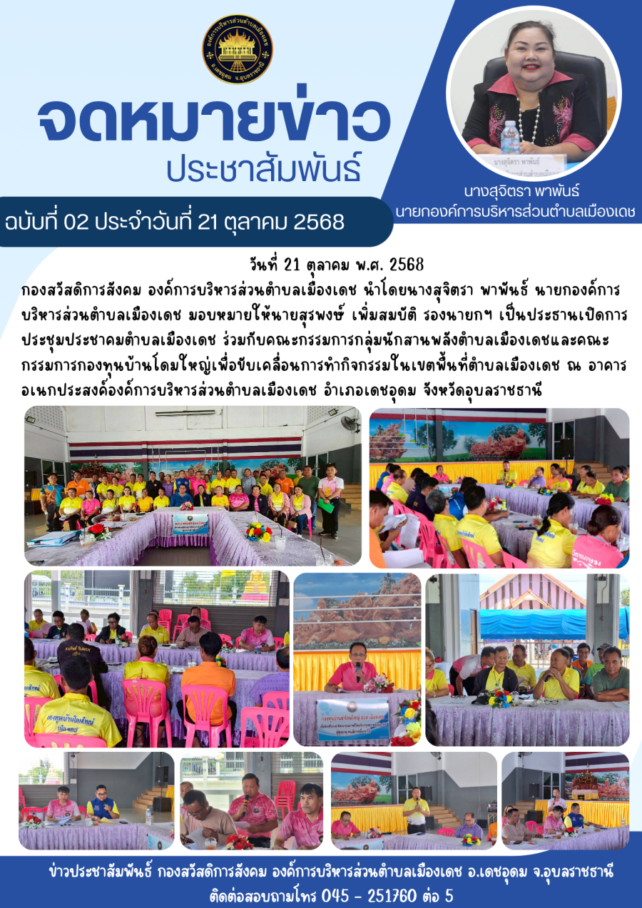 กองสวัสดิการสังคม องค์การบริหารส่วนตำบลเมืองเดช นำโดยนางสุจิตรา พาพันธ์ นายกองค์การ