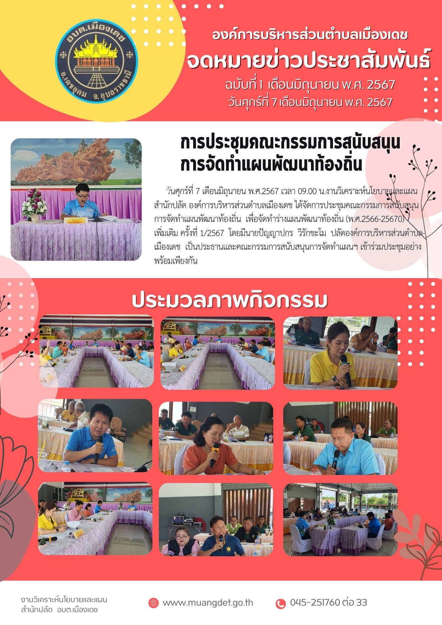 Friday, 07 June 2024 09:38วันศุกร์ที่ 7 เดือนมิถุนายน พ.ศ.2567 เวลา 09.00 น.งานวิเคราะห์นโยบายและแผน สำนักปลัด องค์การบริหารส่วนตำบลเมืองเดช ได้จัดการประชุมคณะกรรมการสนับสนุนการจัดทำแผนพัฒนาท้องถิ่น เพื่อจัดทำร่างแผนพัฒนาท้องถิ่น (พ.ศ.2566-25670) เพิ่มเติม ครั้งที่ 1/2567 โดยมีนายปัญญาปกร วิรักขะโม ปลัดองค์การบริหารส่วนตำบล-เมืองเดช เป็นประธานและคณะกรรมการสนับสนุนการจัดทำแผนฯ เข้าร่วมประชุมอย่างพร้อมเพียงกัน #งานวิเคราะห์นโยบายและแผน สำนักปลัดฯ โทร 045251760 /ต่อ 33