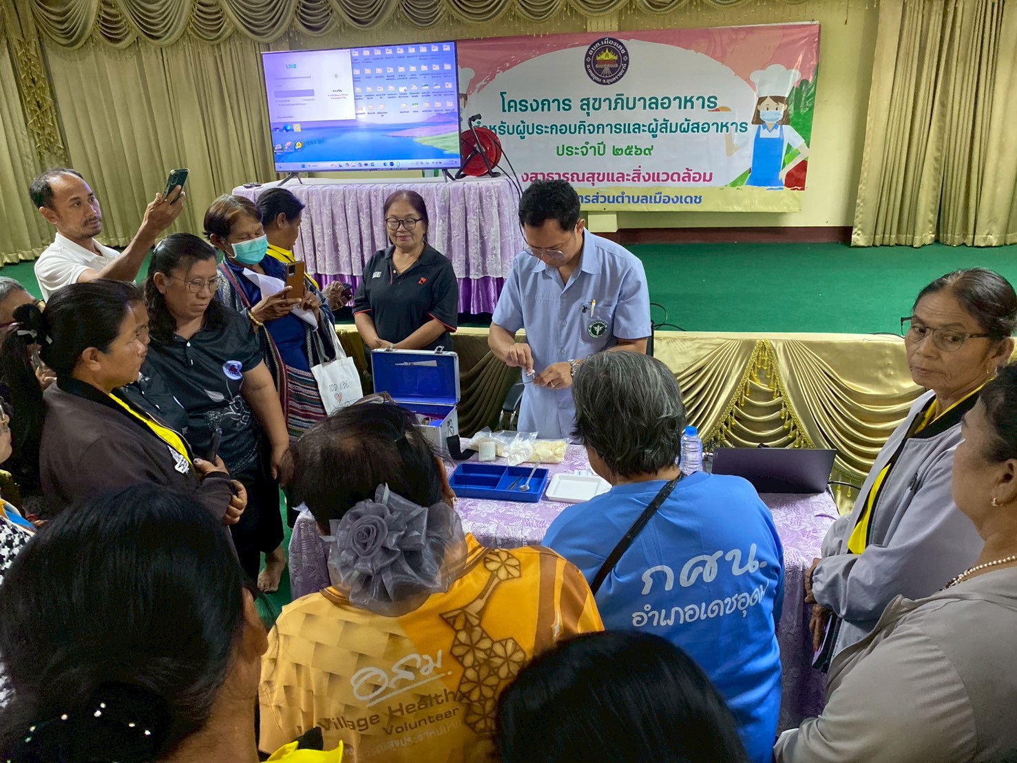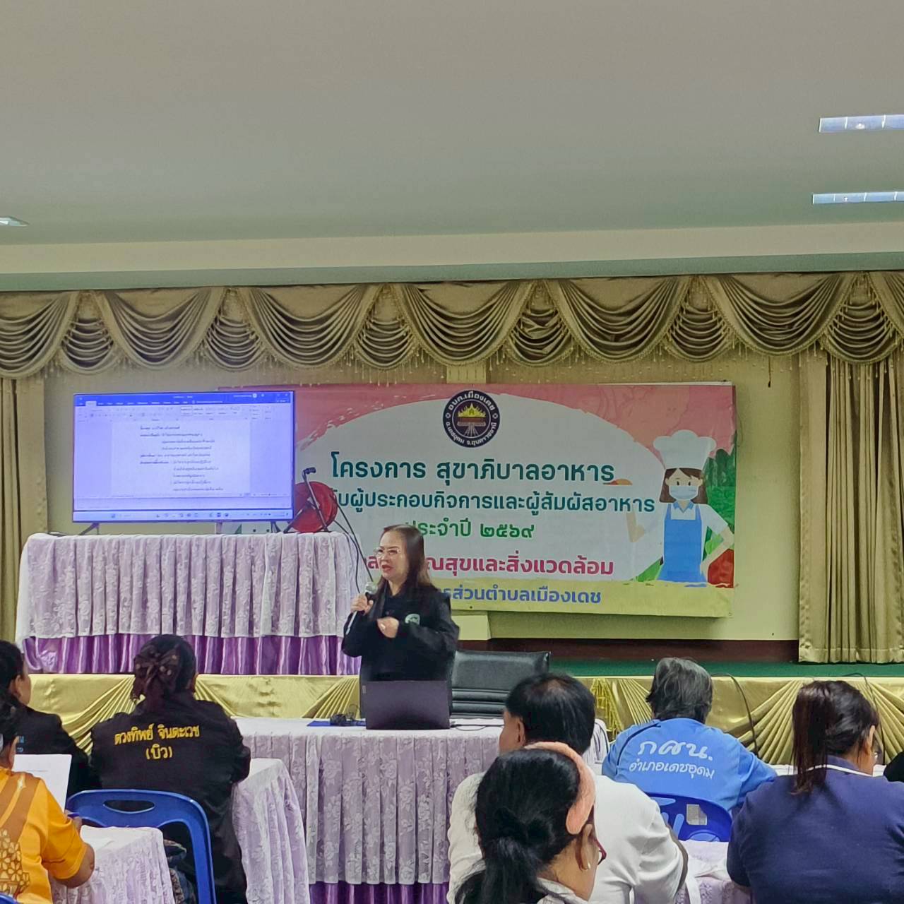 Thursday, 13 November 2025 15:47วันที่ 13 พฤศจิกายน 2568 เวลา 09.00 น. นางสุจิตรา พาพันธ์ นายกองค์การบริหารส่วนตำบลเมืองเดช พร้อมด้วยนายชลัท แสนศาลา รองปลัดองค์การบริหารส่วนตำบลเมืองเดช และหัวหน้าส่วนราชการ พนักงานส่วนตำบล องค์การบริหารส่วนตำบลเมืองเดช ได้เป็นประธานในพิธีเปิดโครงการสุขาภิบาลอาหารสำหรับผู้ประกอบกิจการและผู้สัมผัสอาหาร ประจำปีงบประมาณ 2569 วัตถุประสงค์เพื่อยกระดับร้านอาหารและพัฒนาศักยภาพของผู้ประกอบกิจการด้านอาหาร ให้ผ่านเกณฑ์มาตรฐานสุขาภิบาลอาหาร และให้ผู้สัมผัสอาหารมีความรู้ความเข้าใจในเรื่องสุขาภิบาลอาหารได้อย่างถูกต้อง ณ อาคาร ศพอส.อบต.เมืองเดช ตำบลเมืองเดช อำเภอเดชอุดม จังหวัดอุบลราชธานี