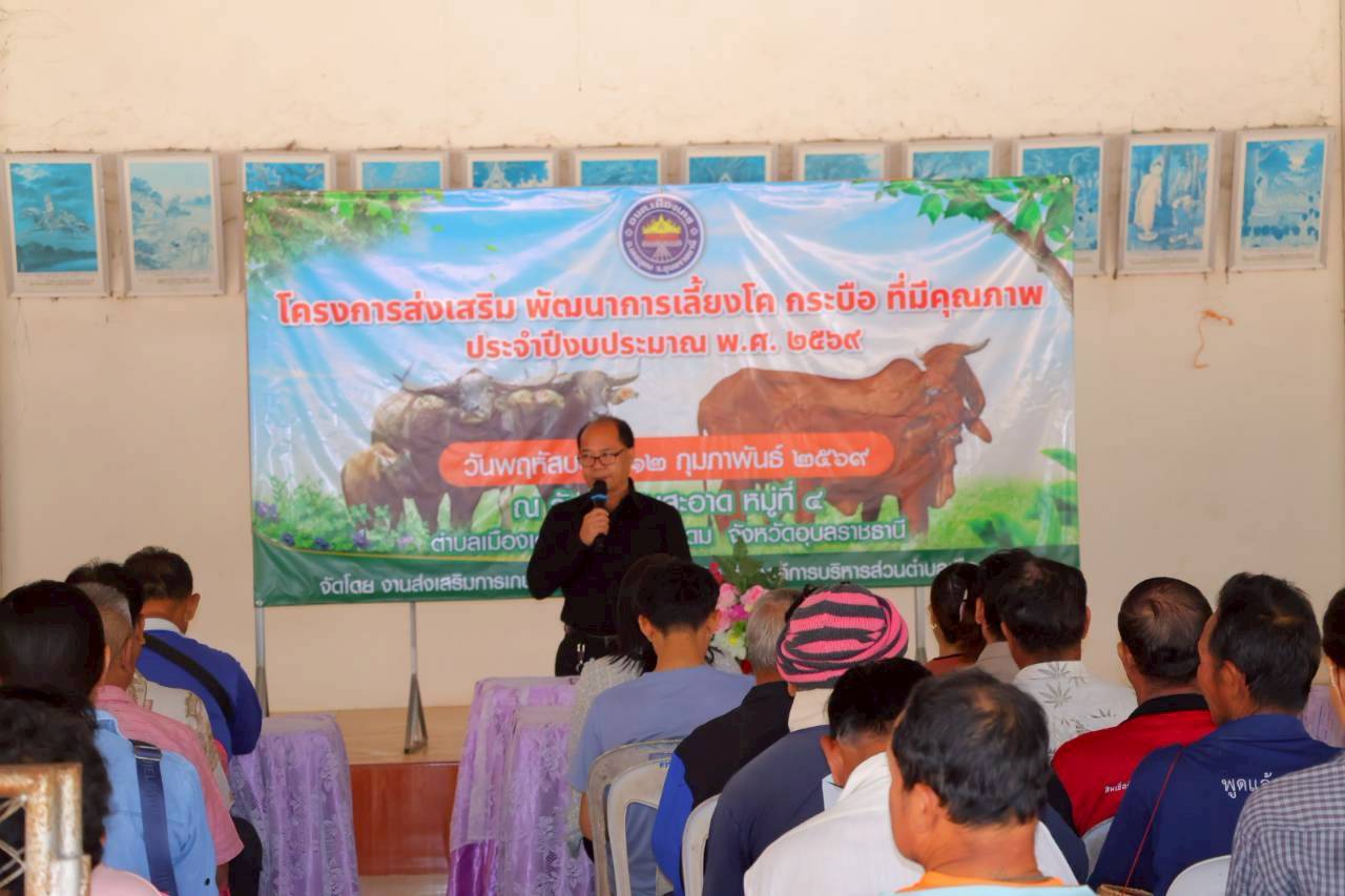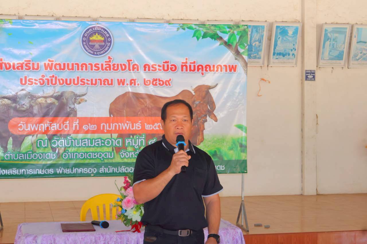Thursday, 12 February 2026 14:30วันที่ 12 กุมภาพันธ์ 2569 นายชลัท แสนศาลา รองปลัดองค์การบริหารส่วนตำบลเมืองเดช ได้เปิดโครงการส่งเสริม พัฒนาการเลี้ยงโค กระบือ ที่มีคุณภาพ ประจำปีงบประมาณ พ.ศ.2569 ณ วัดสมสะอาด หมู่ที่ 4 ตำบลเมืองเดช อำเภอเดชอุดม จังหวัดอุบลราชธานี เพื่อเป็นการส่งเสริมเกษตรกรที่เลี้ยงโคกระบือ ให้มีความรู้ความเข้าใจในการพัฒนาให้โคกระบือมีคุณภาพพร้อมส่งเสริมการดูแลเลี้ยงดูต่างๆ จัดโดย งานวิชาการเกษตรสำนักปลัด อบต.เมืองเดช