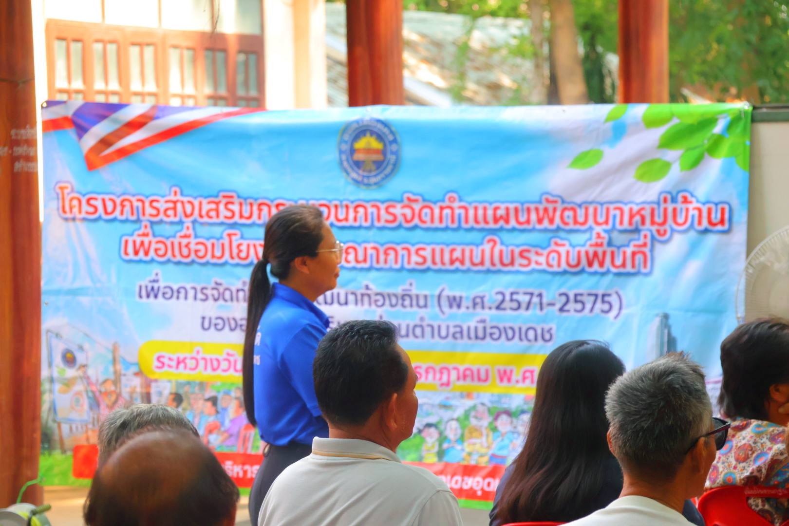 Thursday, 23 April 2026 13:16วันอังคารที่ ๗ เมษายน ๒๕๖๙ เวลา ๑๔.๐๐ น. นางสุจิตรา พาพันธ์ นายกองค์การบริหารส่วนตำบลเมืองเดช พร้อมด้วยคณะผู้บริหาร หัวหน้าส่วนราชการ พนักงานส่วนตำบล พนักงานจ้าง ของ อบต.เมืองเดช เป็นประธานในพิธีเปิดโครงการส่งเสริมกระบวนการจัดทำแผนพัฒนาหมู่บ้านเพื่อเชื่อมโยงและบูรณาการแผนในระดับพื้นที่ ประจำปีงบประมาณ พ.ศ.๒๕๖๙ ณ ศาลาประชาคม ๑ บ้านเมืองเก่า ตำบลเมืองเดช อำเภอเดชอุดม จังหวัดอุบลราชธานี