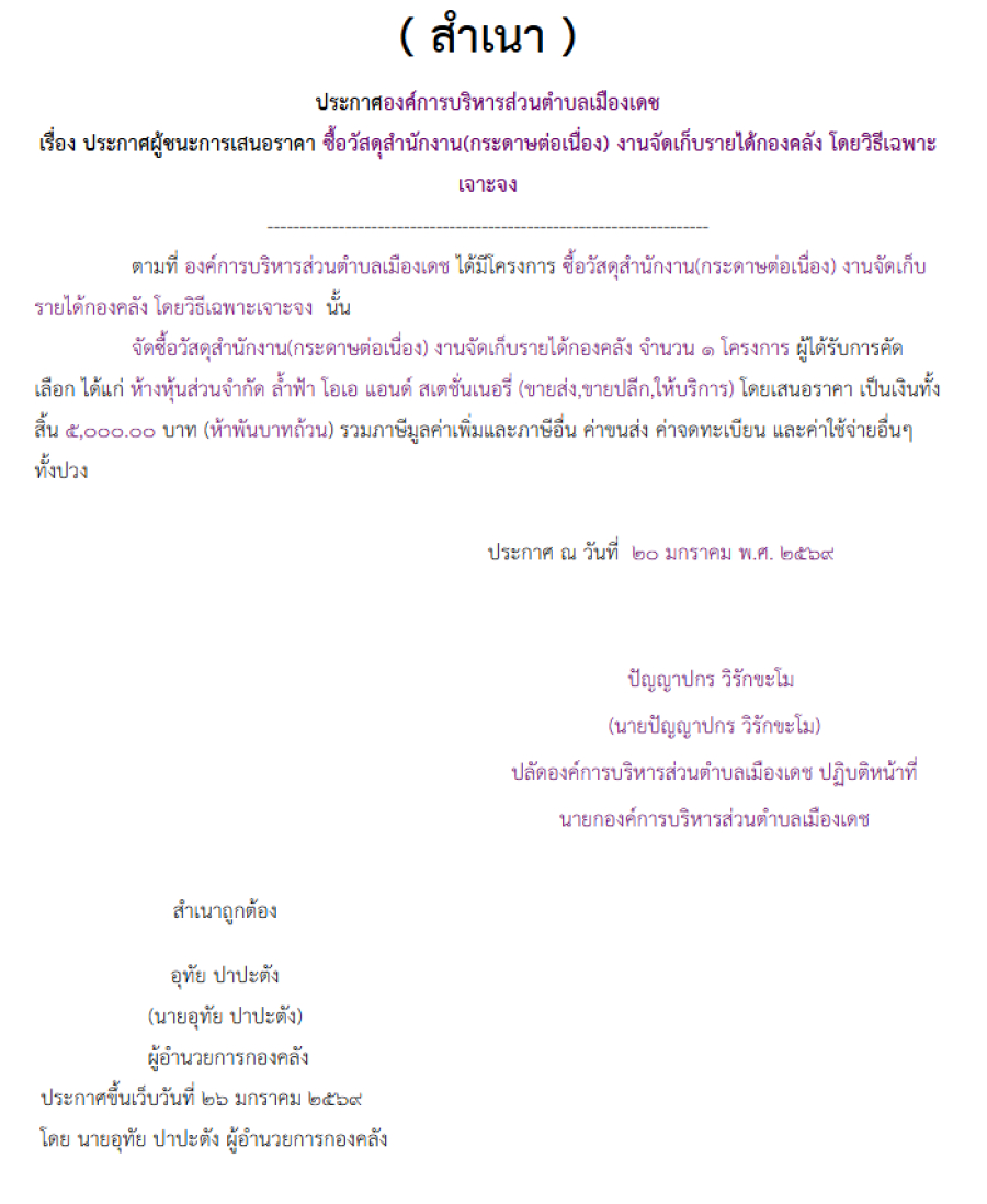 ซื้อวัสดุสำนักงาน(กระดาษต่อเนื่อง) งานจัดเก็บรายได้กองคลัง โดยวิธีเฉพาะเจาะจง เลขที่โครงการ 69019296563