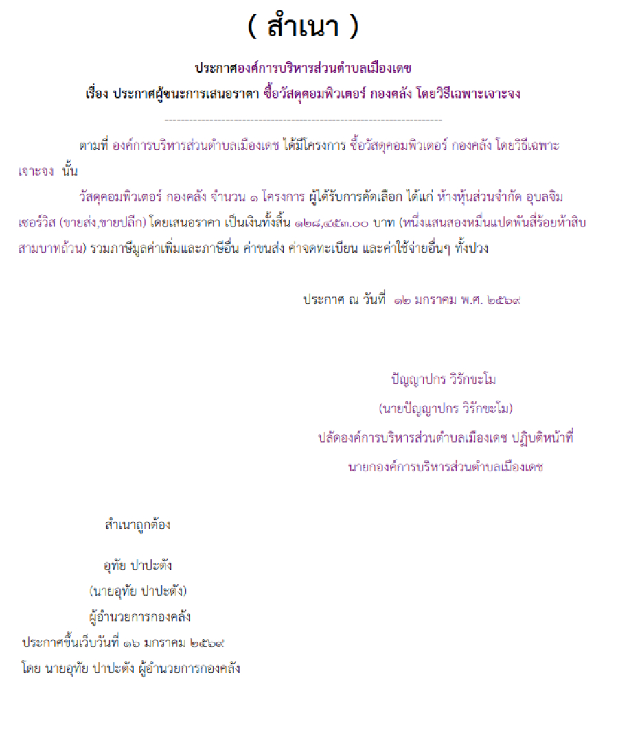 ซื้อวัสดุคอมพิวเตอร์ กองคลัง โดยวิธีเฉพาะเจาะจง (เลขที่โครงการ : 69019250018)